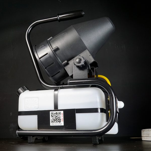 Use the H05 ULV Fogger machine for disinfection, pest control, odour control and plant protection. The FO-500 works by expelling a fine, almost invisi-ble mist into the atmosphere which eventually settles on all surfaces including those impossible to reach by conventional methods. The machine is compact, lightweight and robust, making it ideal for commercial use, whilst equally suited to a domestic environment. The large 5 litre tank and powerful 1400w 240v electric motor allow the covering of large areas with ease. The ability to adjust the fogger output from a vapour of just 9 μm up to a fog 49 μm, and flow rate up to 49 litres per hour makes this machine suitable for the application of disinfectants, biocides, fungacides and pesticides. Regular fogging with a liquid based disinfectant will help prevent the cross-infection of viruses such as MRSA, Coronavirus (human and feline), Strangles, Ringworm and many more